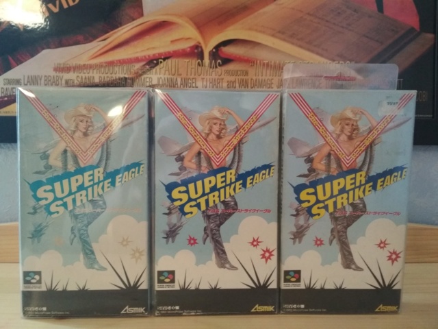 De izquierda a derecha, diferentes grados de decoloración por el sol en cajas de Super strike eagle de Super Famicom. Fuente: https://www.neogeo-players.com